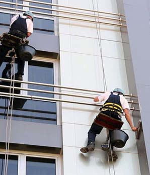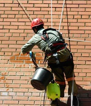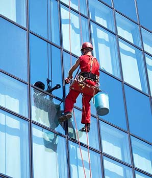 Чистка высотных зданий промышленными альпинистами